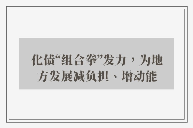 全国人大常委会批准增加六万亿元地方政府债务限额置换存量隐性债务化债“组合拳”发力,为地方发展减负担、增动能