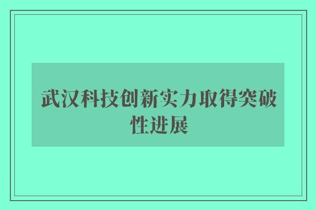 武汉科技创新实力取得突破性进展