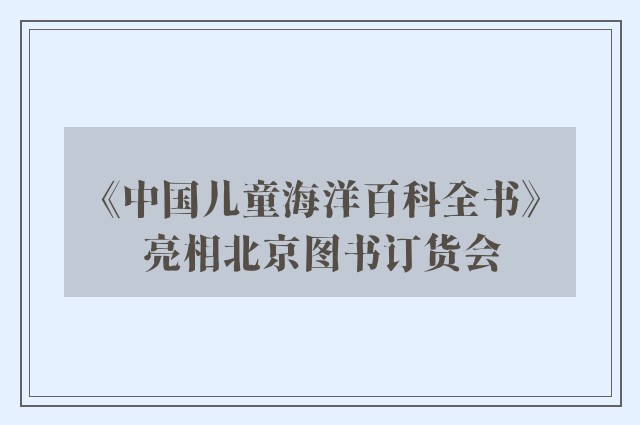 人民网北京1月11日电 (记者刘颖颖)1月11日,“向海图强 守护蓝色家园”——《中国儿童海洋百科全书》新书发布会在北京图书订货会举办。